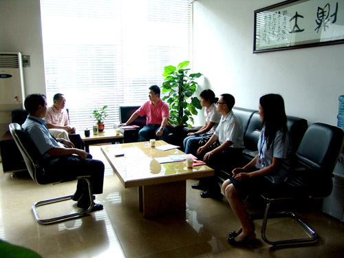 2008年7月17 日,百度(中國)有限公司華南管理委員會總監謝方敏先生攜廣州分公司大部總監莫莉娜一行來廣州市國研機械設備制造有限公司訪問,公司總經理王聲位,副總經理、黨支部書記王聲躍及公司信息部負責人進行了座談。