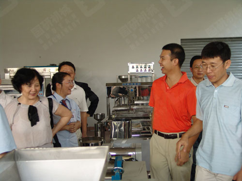 在參觀塑料機械、包裝機械和食品機械展廳時,代表們饒有興趣地向陪同人員詢問機械的性能、價格和市場情況。當代表們走近辦制袋廠的配套機械產品吹膜機、制袋機、印刷機、破碎機、塑料造粒機和辦編織袋廠的配套機械產品拉絲機、收卷機、圓織機、印刷機、覆膜機、裁袋機、縫包機時,對這種一站式的經營模式大加贊賞;在食品機械展廳得知國研牌河粉機是全國第一品牌時,好幾個企業家馬上表示說,國研牌河粉機的名氣的確很大,他們開車天天聽國研牌河粉機的廣告。
