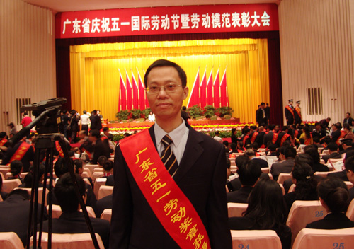 4月28日上午,廣東省委省政府慶祝“五一”國際勞動節暨勞動模范表彰大會在省委禮堂隆重舉行。廣州市國研機械設備制造有限公司市場部經理、廣州市勞動模范劉啟剛榮獲廣東省五一勞動獎章,并受到省委書記汪洋、省長黃華華等領導的親切接見。