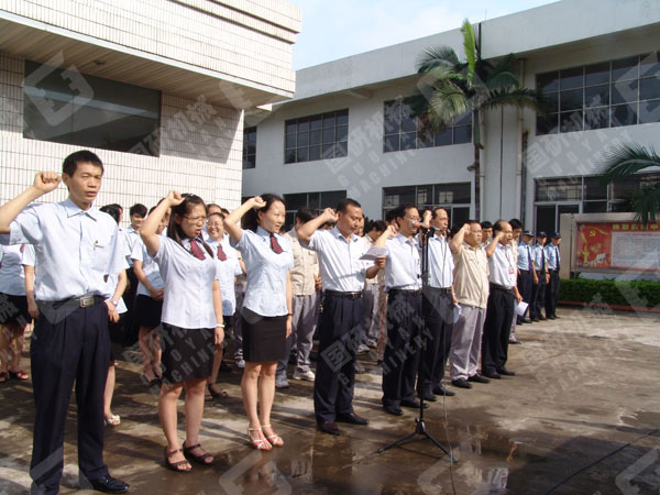 2011年7月1日,國(guó)研機(jī)械公司園區(qū)內(nèi)彩旗飄揚(yáng)、鼓樂(lè)齊鳴,到處洋溢著一片喜慶氣氛。公司全體員工在黨支部的組織和工會(huì)、團(tuán)支部的協(xié)助下,以升國(guó)旗、重溫入黨誓詞、參觀虎門(mén)愛(ài)國(guó)主義教育基地等形式熱烈慶祝中國(guó)共產(chǎn)黨誕辰九十周年。