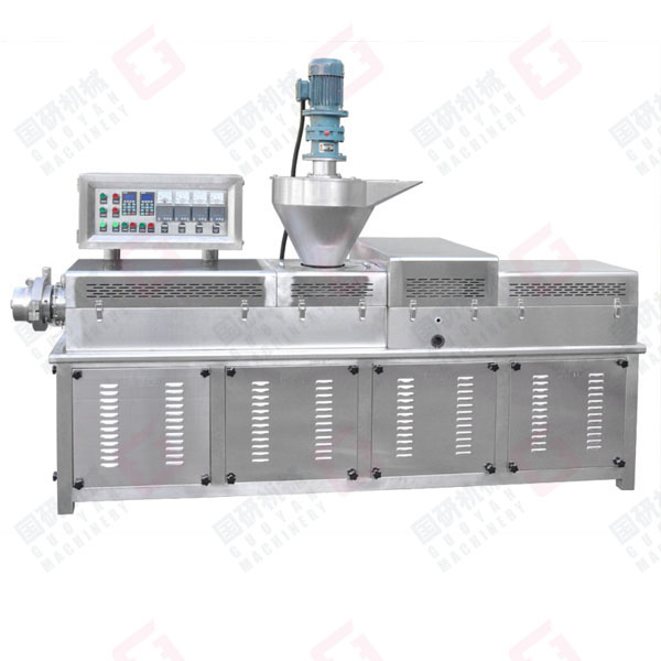 原料(面粉)→加水?dāng)嗬m(xù)攪拌→物料輸送→強(qiáng)制喂料→高溫半膨化擠出→面片冷卻輸送→切條切斷→包裝